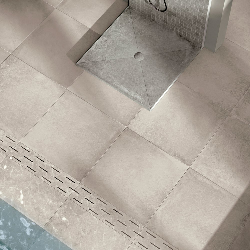 Materica presenta cinco colores en diversos formatos y soluciones decorativas con una superficie natural y soluciones con un acabado de agarre R11